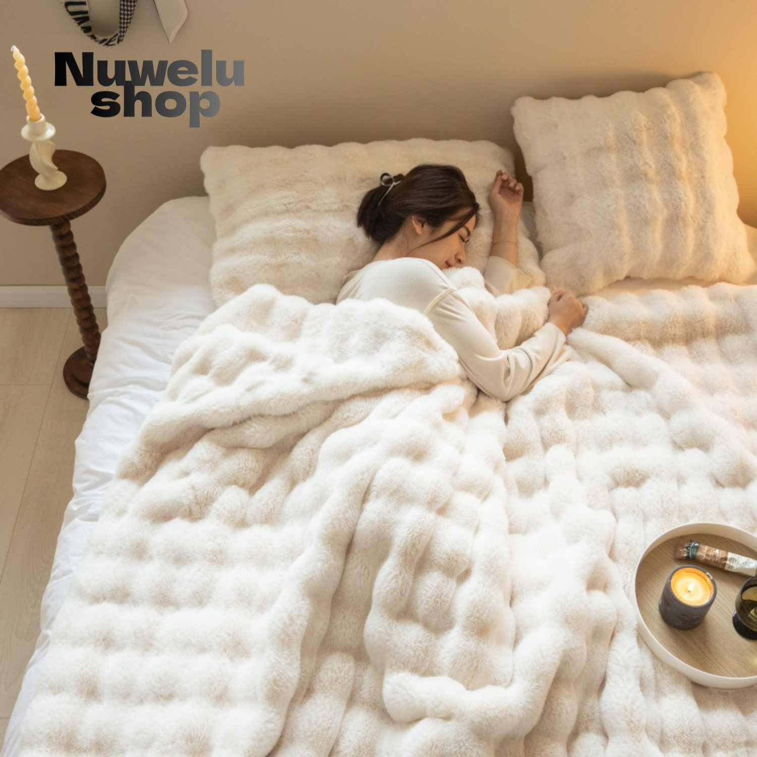 当毛布は、触れた瞬間にとろけるような贅沢なぬくもりを感じられる“高級マイクロファイバー素材”を使用しています。